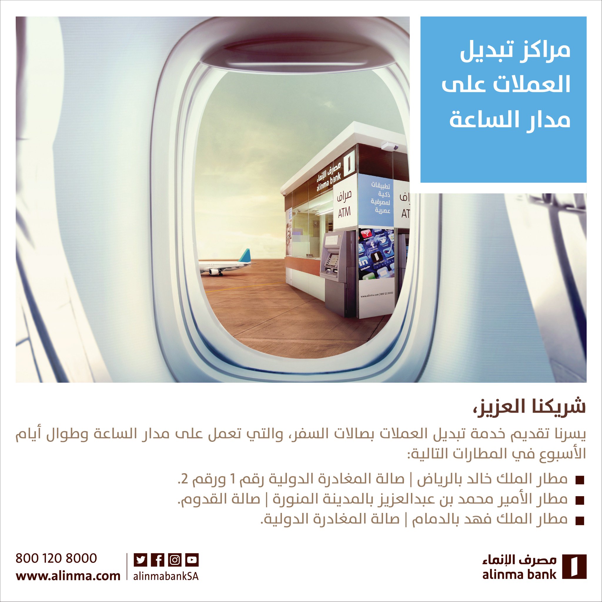 مصرف الإنماء On Twitter خدمات الإنماء خدمة تبديل العملات من مصرف الإنماء متوفرة الآن على مدار الساعة وطوال أيام الأسبوع في مطار الملك خالد بالرياض ومطار الأمير محمد بن عبدالعزيز بالمدينة المنورة ومطار الملك