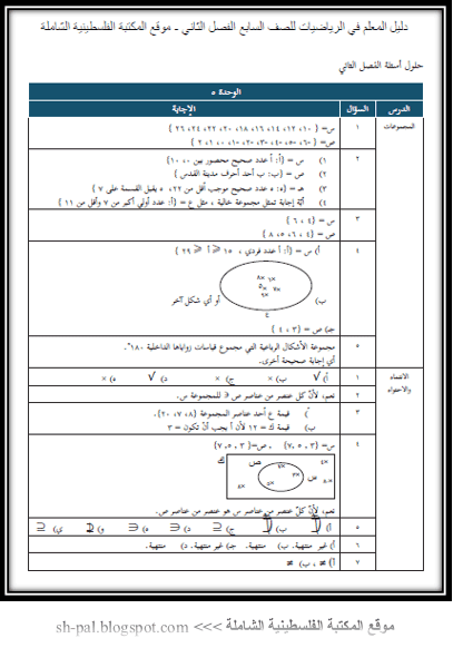 حلول تمارين ومسائل كتاب الرياضيات للصف السابع الفصل الثاني المكتبة الفلسطينية الشاملة