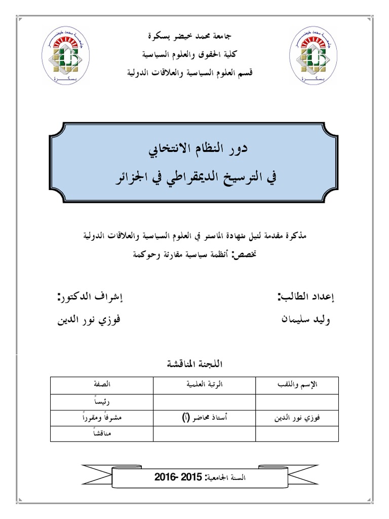 دور النظام الانتخابي في الترسيخ الديمقراطي في الجزائر سليمان وليد Pdf